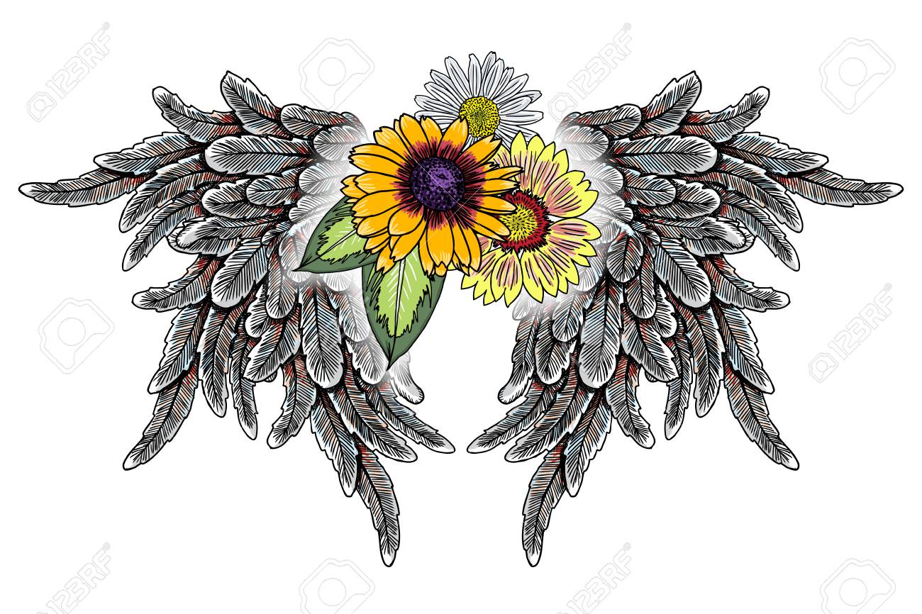 Rose Tattoo Angels Wing Stock Illustration 214414366