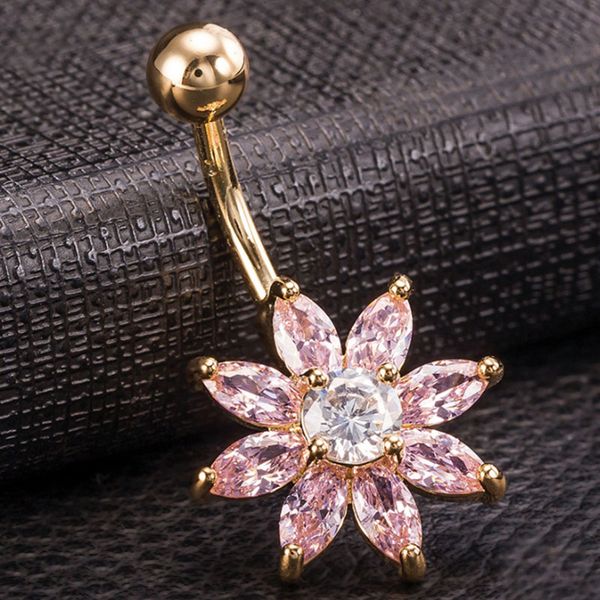 Kuniu Fashion Luxury Zircon Flower Petal Navel Piercing Bell